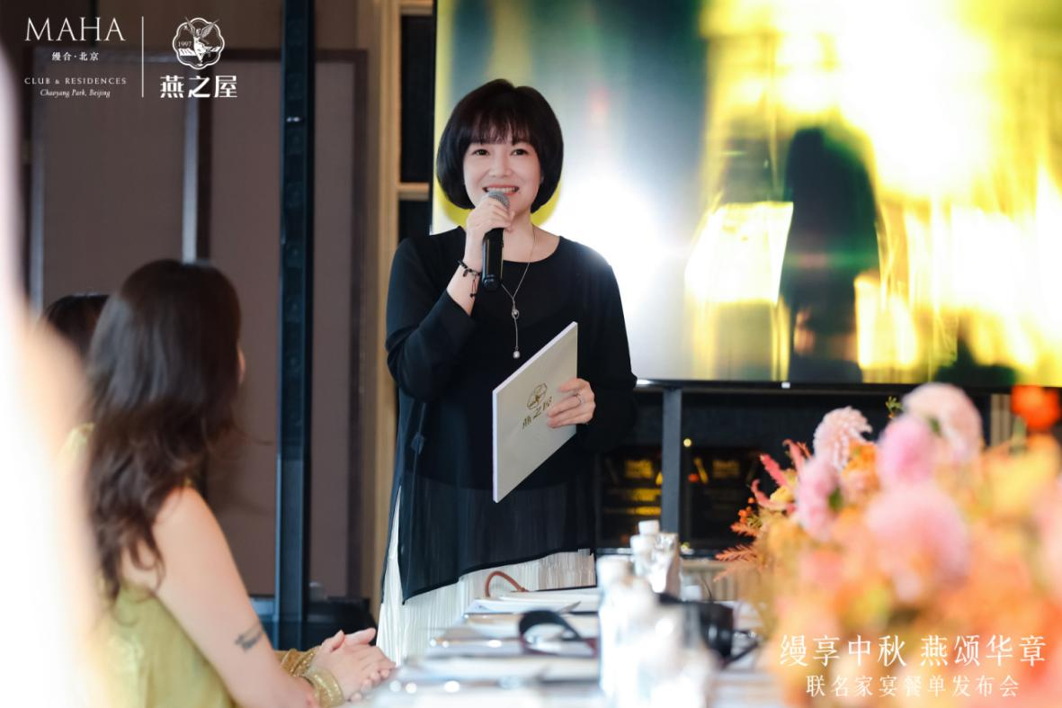 燕之屋公關(guān)總監(jiān)楊航則在致辭中闡釋了這次跨界合作的文化深意:“燕之屋與如此杰出的伙伴合作,正是基于雙方對(duì)品質(zhì)、細(xì)節(jié)與人文關(guān)懷的共同追求。我們都認(rèn)同,真正的高級(jí),在于將真誠融入服務(wù),將文化寓于美食,讓每一次相聚,承載更深厚的情感與記憶。此次聯(lián)名中秋家宴菜單,是我們雙方團(tuán)隊(duì)多次溝通、靈感碰撞的成果。愿這一席宴,成為這個(gè)秋天您與家人、摯友之間溫暖相聚的美好注腳。”