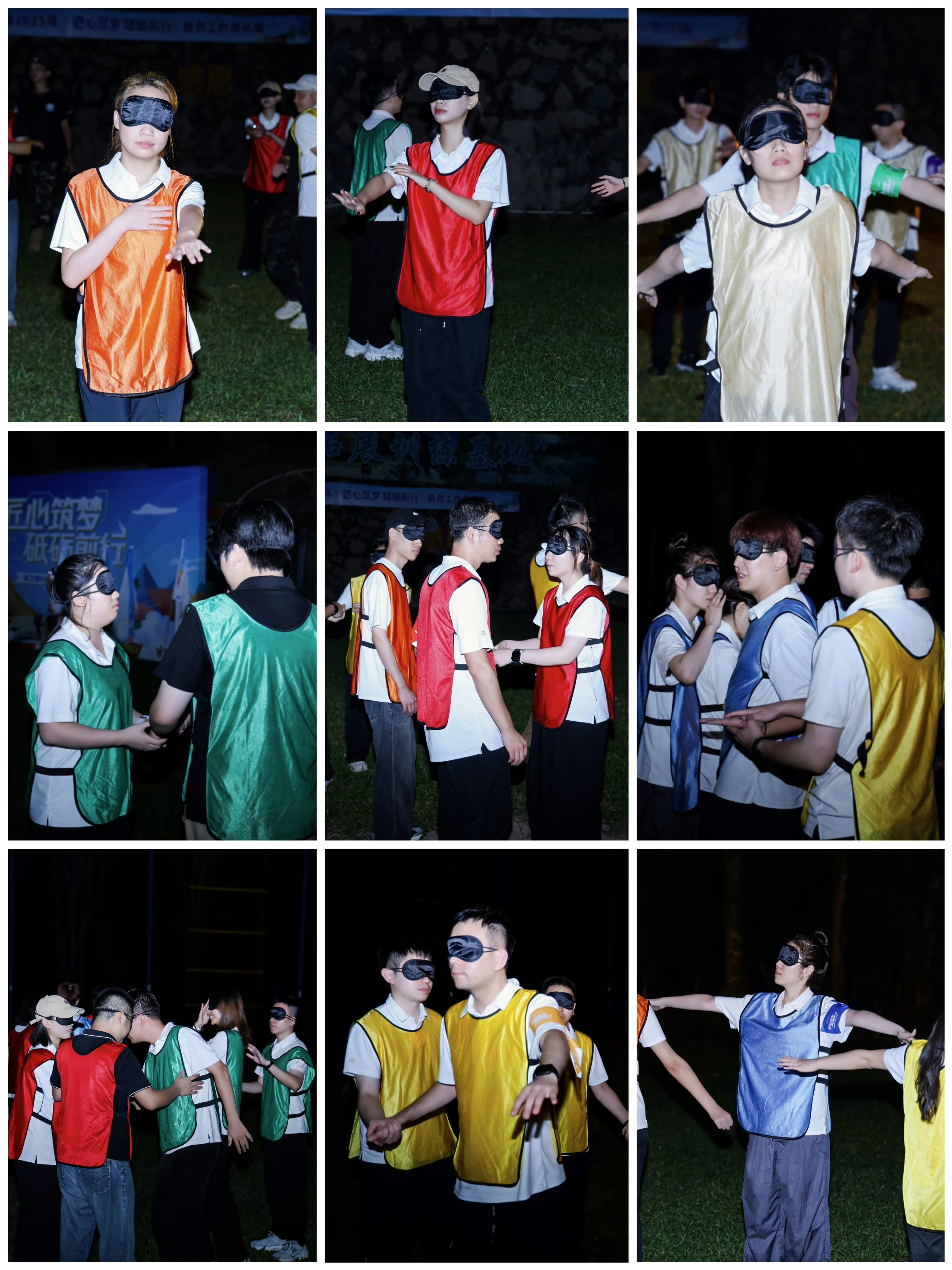 隨著夜幕降臨,“找回團(tuán)隊”項目將整場拓展推向新的高潮。隊員們被蒙住雙眼,在黑暗中尋找隊友,每當(dāng)遇到人的時候只能通過除語言外的其他方式及彼此默契來確認(rèn)是否是團(tuán)隊同伴。游戲過程中,已經(jīng)找回的隊友會被教官重新拆散,團(tuán)隊不僅需要再次找回成員,還需要緊緊守護(hù)隊友,堅定彼此的選擇。那一刻,嘈雜的干擾聲遠(yuǎn)去,只留下對伙伴的信任指引方向。當(dāng)雙手終于相握,這份在困境中建立的羈絆,讓團(tuán)隊的凝聚力愈發(fā)堅實。隨后的復(fù)盤會上,隊員們圍坐分享收獲、梳理經(jīng)驗,再一次體會到團(tuán)隊信任與凝聚的力量。